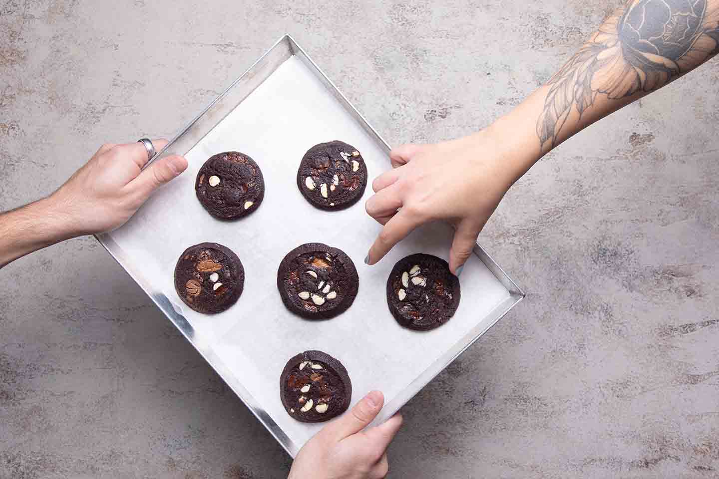 Am Anfang sind die Kekse noch sehr weich. Daher ist es wichtig, dass Du sie für mindestens 3—5 Minuten auf dem Blech auskühlen lässt. Wenn Du es gar nicht mehr erwarten kannst, hol dir einen Löffel und pass auf dass du dich nicht verbrennst. Genieße Deine frisch gebackenen CUTZ Kekse – aber lass auch etwas für deine Gäste übrig! ;-)