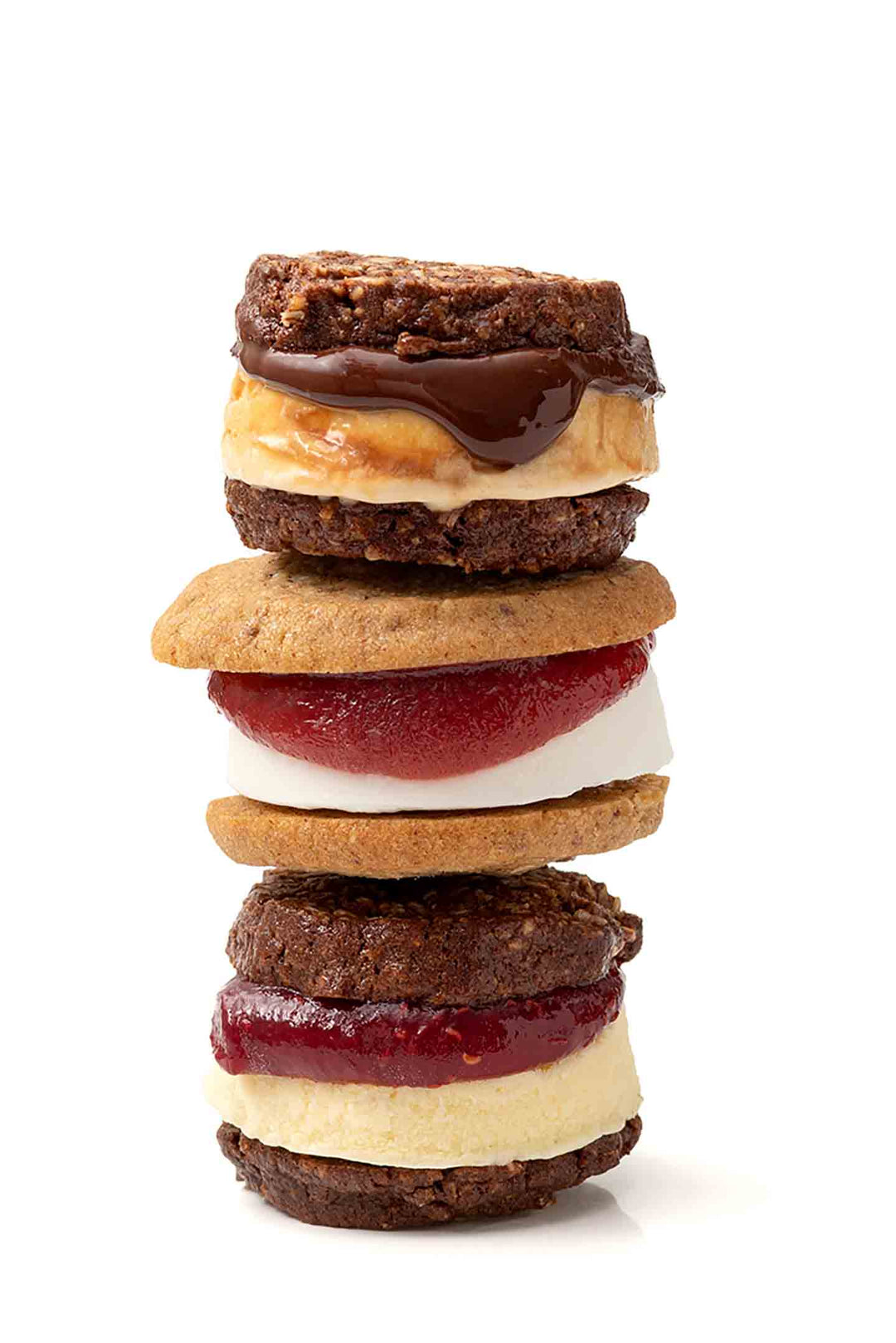 Gib unseren Eis-Keks_Sandwiches nach dem Herausnehmen aus dem Tiefkühler etwas Zeit sich an die neue Umgebung anzupassen. Wenn das Eis etwas antaut, entfaltet es erst so richtig seinen einzigartigen Geschmack. Und auch die Konfitüre gewinnt an Intensität.