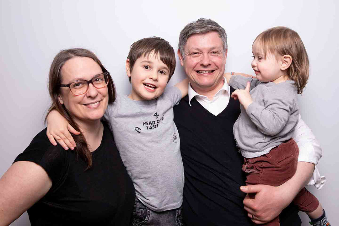 Die vier Menschen auf diesem Bild sind das Kernteam von CUTZ. In diesem kleinen Team passiert die Magic. Birgit macht unsere Produktentwicklung. Der Lausbub vor ihr ist unser Head of Taste. Hubert ist dank unzähliger Verkostungen, der Kundenflüsterer. Und die kleine Dame in seinem Arm, ist unsere Head of Cuteness.
